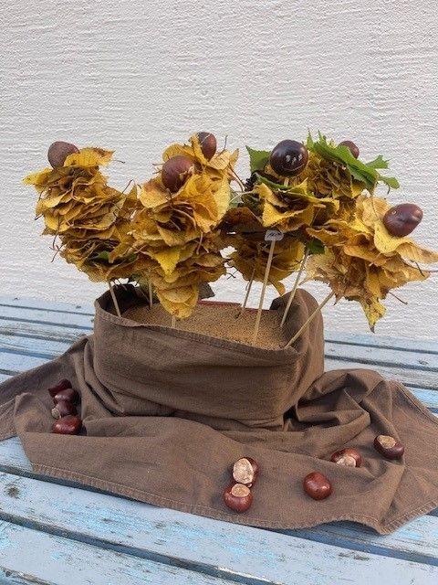 Unsere Kinder haben sich für ihre Kastanienblätter-Wichtel zuerst die verschiedenen Naturmaterialen gesammelt und dann sehr schöne Wichtel gestaltet.