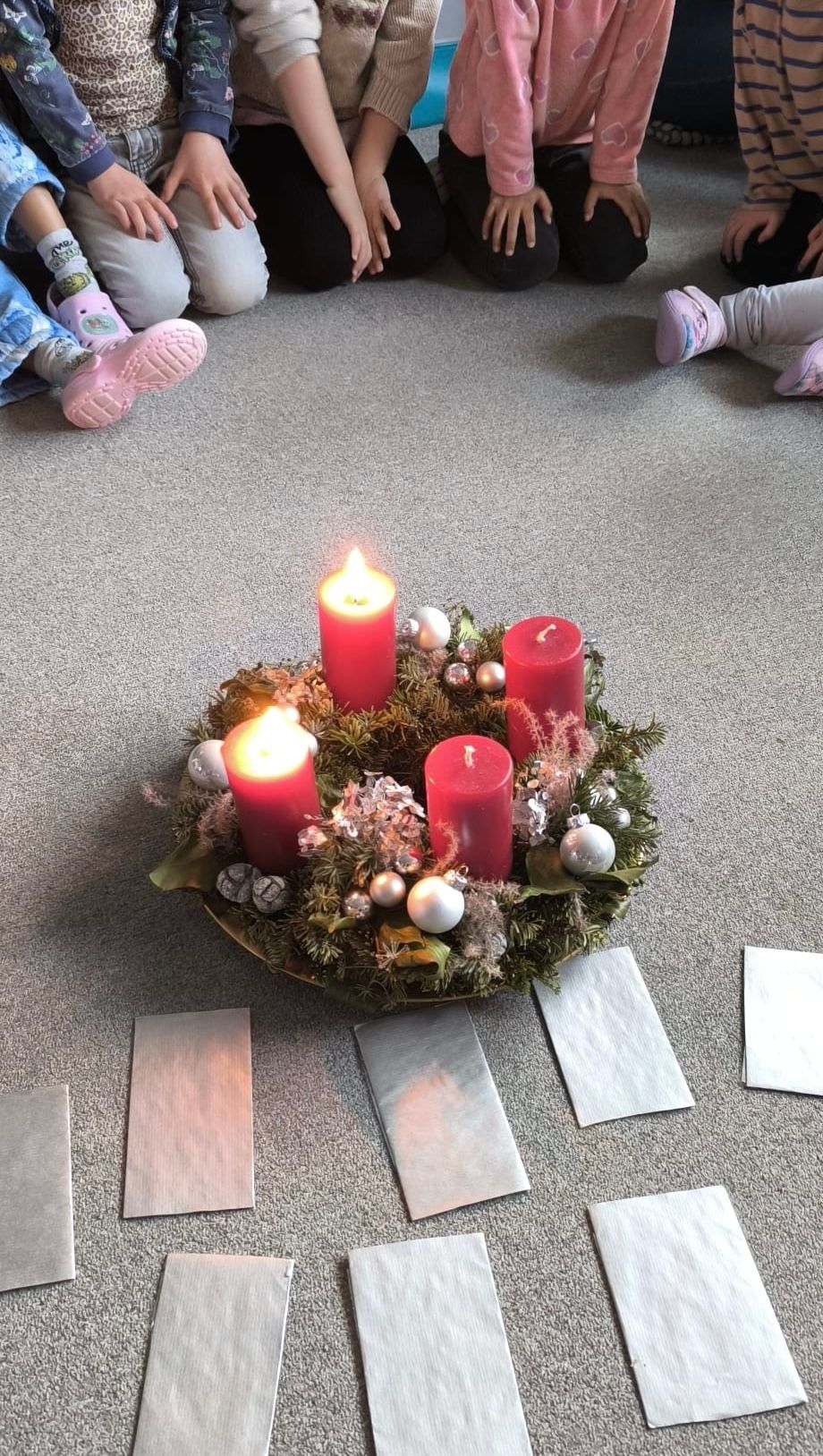 Bei zwei strahlenden Kerzen, im Schein des Lichts, begannen die Kinder mit leuchtenden Augen den Adventszauber und lösten voller Eifer die Rätsel der Wichtel.